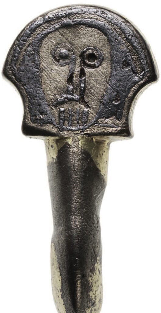 Figure 5.Elsfleth-Hogenkamp. Silver-gilt tongue of a Frankish-type buckle with niello fill removed from left Eye By Niedersachsisches Institut fur historische Kustenforschung, Wilhelmshaven