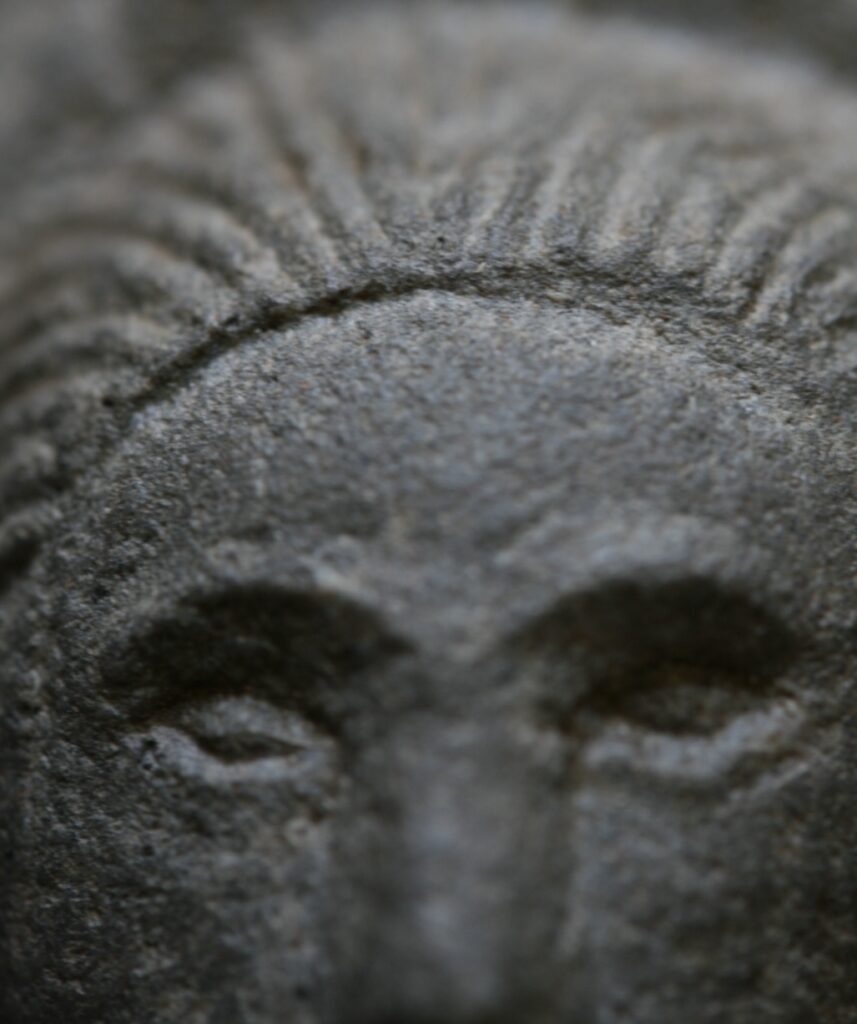 There are also three other examples from the Sutton Hoo Burial finds that don’t usually get as much attention which also demonstrate Wodan’s one-eyed characteristic– the purse lid garnet mounts, the whetstone, and the garnet-eyes of the animal head terminal in the walu crest of the Sutton Hoo Helmet.